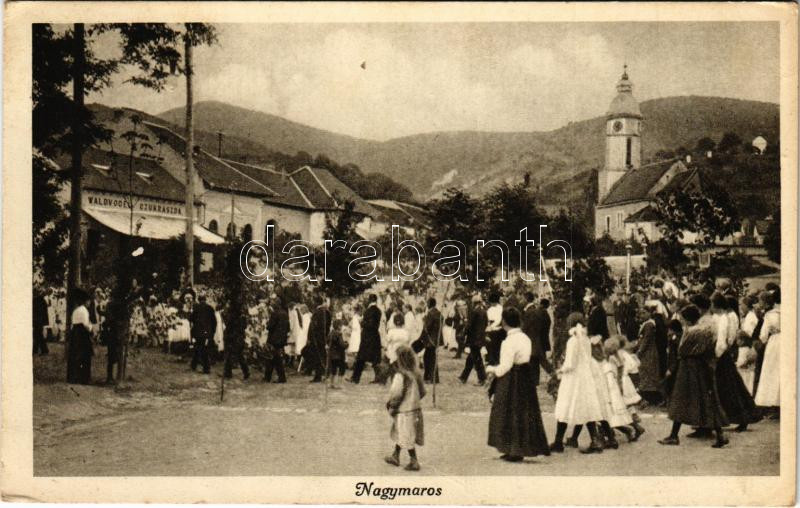 Beschreibung: 1925 Nagymaros, Fő tér, Waldvogel cukrászda, körmenet (EK)