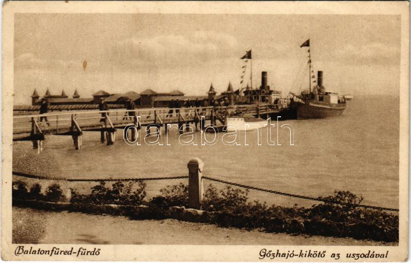 1928 Balatonfüred, Gőzhajókikötő az uszodával (ázott sarok / wet corne... https://www.darabanth.com/de/442-Fernauktion/442.0/Ansichtskarten/Ungarn~2000005/1928-Balatonfured-Gozhajokikoto-az-uszodaval-azott-sarok-wet-corner~II2907443