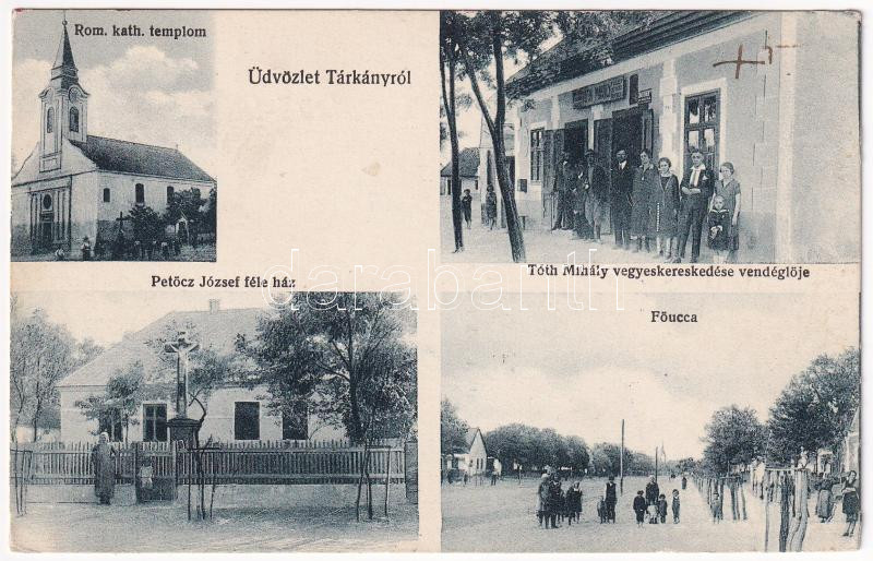 1928 Tárkány, Római katolikus templom, Fő utca, Petőcz József féle ház... https://www.darabanth.com/de/442-Fernauktion/442.0/Ansichtskarten/Ungarn~2000005/1928-Tarkany-Romai-katolikus-templom-Fo-utca-Petocz-Jozsef-fele-haz-Toth-Mihaly-vegyes~II2909991