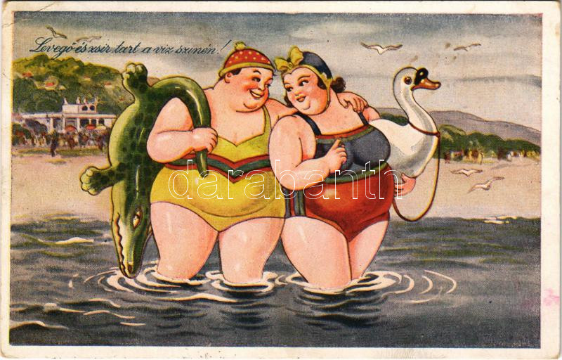 1943 Balaton, "Levegő és zsír tart a víz színén!" humoros ka... https://www.darabanth.com/de/442-Fernauktion/442.0/Ansichtskarten/Ungarn~2000005/1943-Balaton-Levego-es-zsir-tart-a-viz-szinen-humoros-karikatura-EK~II2906341