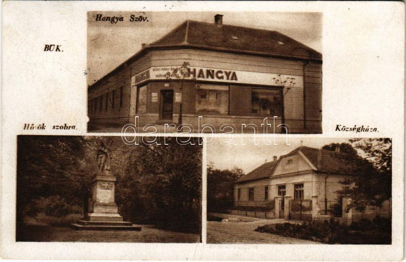 1950 Bük, Hősök szobra, emlékmű, Községháza, Hangya szövetkezet üzlete... https://www.darabanth.com/de/442-Fernauktion/442.0/Ansichtskarten/Ungarn~2000005/1950-Buk-Hosok-szobra-emlekmu-Kozseghaza-Hangya-szovetkezet-uzlete-es-sajat-kiadasa~II2906822