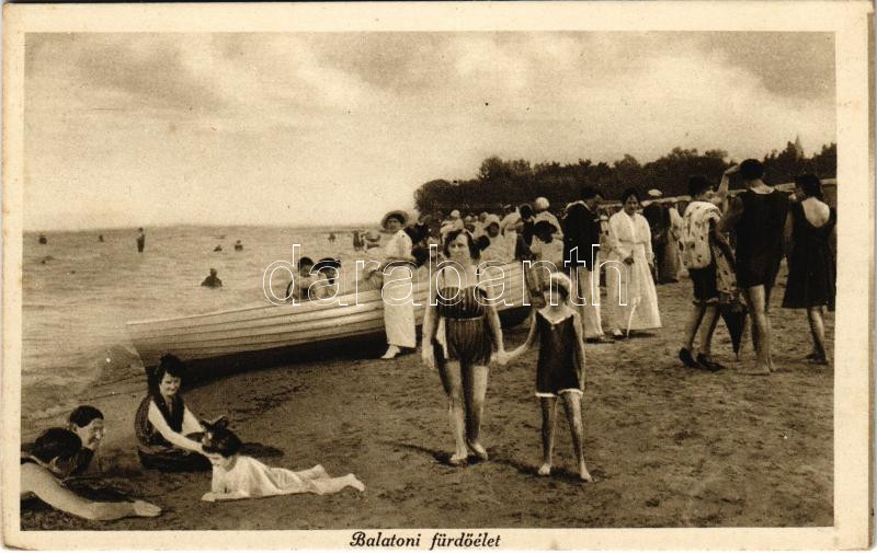 Balaton, Balatoni fürdőélet, fürdőzők https://www.darabanth.com/de/442-Fernauktion/442.0/Ansichtskarten/Ungarn~2000005/Balaton-Balatoni-furdoelet-furdozok~II2913550