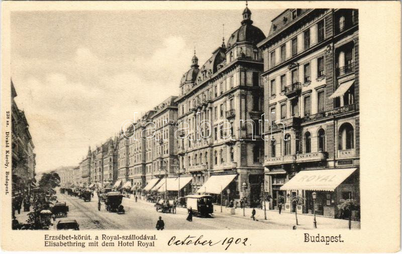 Budapest VII. Erzsébet körút, Royal szálloda, villamos, lovaskocsik. D... https://www.darabanth.com/de/442-Fernauktion/442.0/Ansichtskarten/Ungarn~2000005/Budapest-VII-Erzsebet-korut-Royal-szalloda-villamos-lovaskocsik-Divald-Karoly-238~II2906407