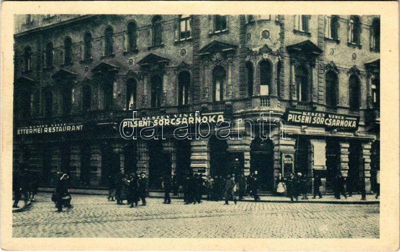 Beschreibung: Budapest VII. Keszey Vince Pilseni Sörcsarnoka, étterem. Rákóczi út 44. (EK)