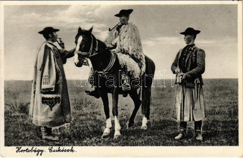 Hortobágy, csikósok, magyar folklór https://www.darabanth.com/de/442-Fernauktion/442.0/Ansichtskarten/Ungarn~2000005/Hortobagy-csikosok-magyar-folklor~II2906894