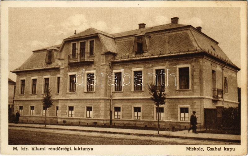 Miskolc, Csabai kapu, M. kir. állami rendőrségi laktanya. Grünwald Ign... https://www.darabanth.com/de/442-Fernauktion/442.0/Ansichtskarten/Ungarn~2000005/Miskolc-Csabai-kapu-M-kir-allami-rendorsegi-laktanya-Grunwald-Ignac-kiadasa-EK~II2910385