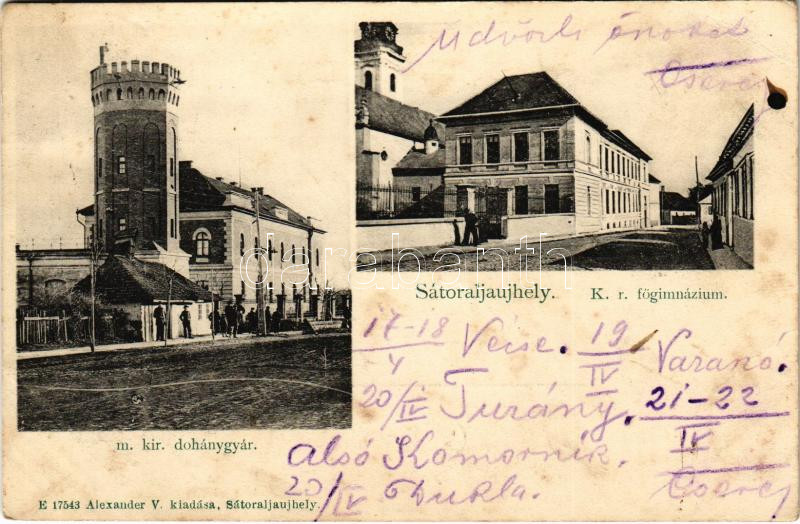 Sátoraljaújhely, M. kir. dohánygyár, K.r. főgimnázium. Alexander V. ki... https://www.darabanth.com/de/442-Fernauktion/442.0/Ansichtskarten/Ungarn~2000005/Satoraljaujhely-M-kir-dohanygyar-Kr-fogimnazium-Alexander-V-kiadasa-EB~II2909433