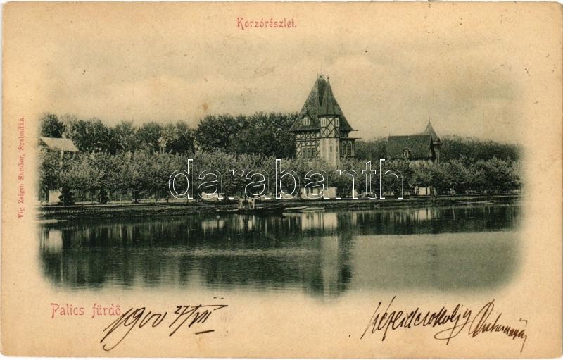 Beschreibung: 1900 Palicsfürdő, Palic (Szabadka); Korzórészlet, tó. Vig Zsigmond Sándor kiadása / lake, promenade