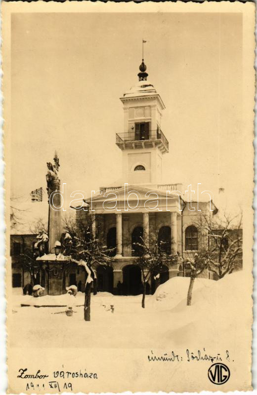 1941 Zombor, Sombor; Városháza télen / town hall in winter. Vig photo ... https://www.darabanth.com/de/442-Fernauktion/442.0/Ansichtskarten/Vojvodina~2000011/1941-Zombor-Sombor-Varoshaza-telen-town-hall-in-winter-Vig-photo-EK~II2909340