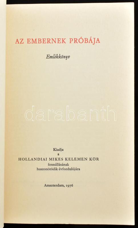 A Hollandiai Mikes Kelemen Kör 2 emigráns kiadású kötete: Az embernek próbája. Emlékkönyv a Hollandiai Mikes Kelemen Kör fennállásának huszonötödik évfordulójára. Amszterdam, 1976, HMKK. + Önarcképünk sorsunk tükrében. 1945-1949. Sine ira et studio. H.n., 1984, HMKK. Kiadói papírkötés.