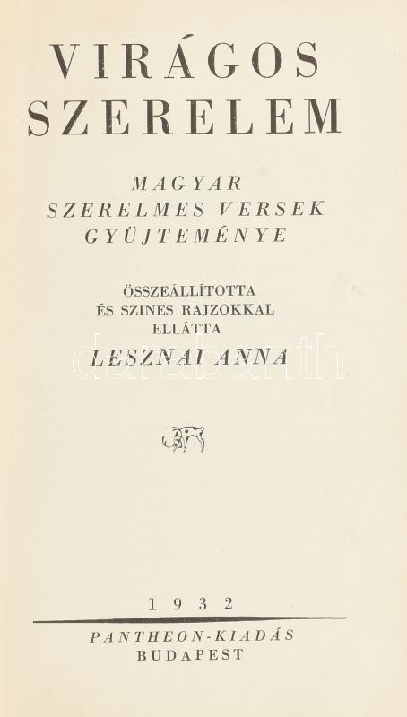Lesznai Anna (szerk.):Virágos szerelem. Magyar szerelmes versek gyűjteménye. Összeállította és színes rajzokkal ellátta -
