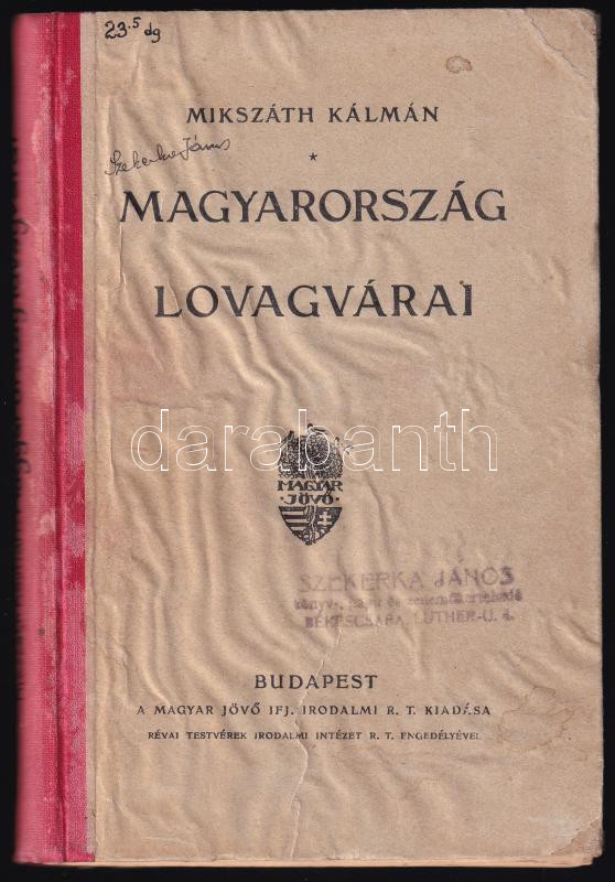 Mikszáth Kálmán: Magyarország lovagvárai. Bp., én.,Magyar Jövő Ifj. Kiadói félvászon-kötés, kopott, foltos, hullámos borítóval, a kötés egy helyen sérült (128/129.)