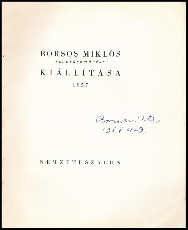 1957 Borsos Miklós kiállítási katalógus, a művész autográf aláírásával... https://www.darabanth.com/de/442-Fernauktion/442.0/Bucher/Bucher-Architektur-Kunst~1000012/1957-Borsos-Miklos-kiallitasi-katalogus-a-muvesz-autograf-alairasaval~II2912998