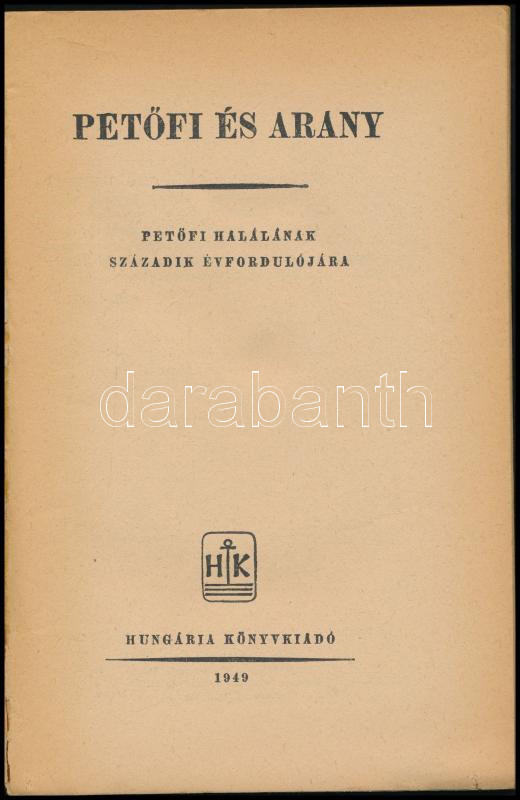 Petőfi és Arany. Petőfi halálának századik évfordulójára. Bp., 1949. H... https://www.darabanth.com/de/442-Fernauktion/442.0/Bucher/Bucher-Geschichte~1000010/Petofi-es-Arany-Petofi-halalanak-szazadik-evfordulojara-Bp-1949-Hungaria-Kiadoi-pap~II2907571
