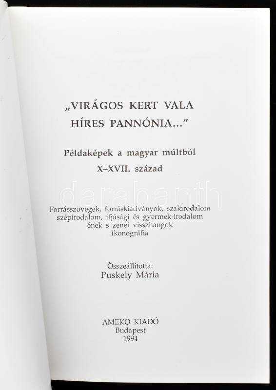 Puskely Mária: "Virágos kert vala a híres Pannónia", melléklettel.Kiadói papírkötésben. Bp., 1994. Amieko Hozzá királyok leszármazási táblája melléklet