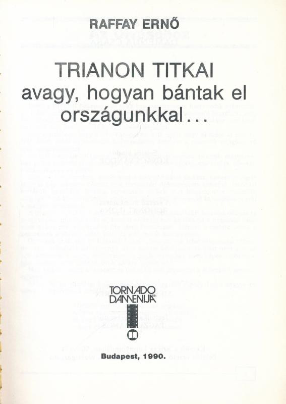 Raffay Ernő: Trianon titkai, avagy hogyan bántak el országunkkal. Bp.,... https://www.darabanth.com/de/442-Fernauktion/442.0/Bucher/Bucher-Geschichte~1000010/Raffay-Erno-Trianon-titkai-avagy-hogyan-bantak-el-orszagunkkal-Bp-1990-Tornado-Damenija-Ki~II2867440