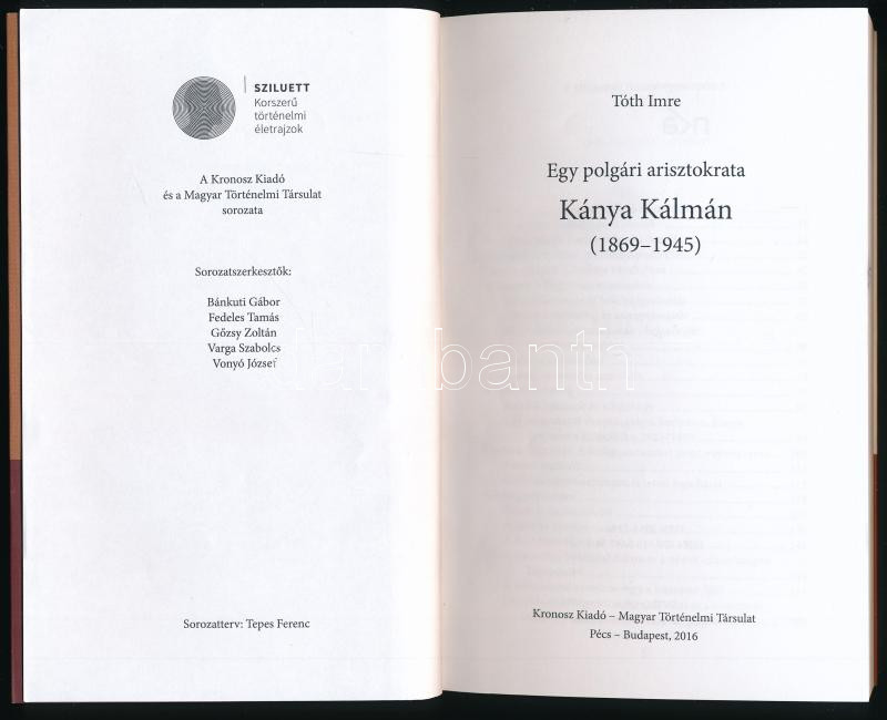 Tóth Imre: Egy polgári arisztokrata. Kánya Kálmán (1869-1945). Pécs-Bp... https://www.darabanth.com/de/442-Fernauktion/442.0/Bucher/Bucher-Geschichte~1000010/Toth-Imre-Egy-polgari-arisztokrata-Kanya-Kalman-1869-1945-Pecs-Bp-2016-Kronosz-Magya~II2876411