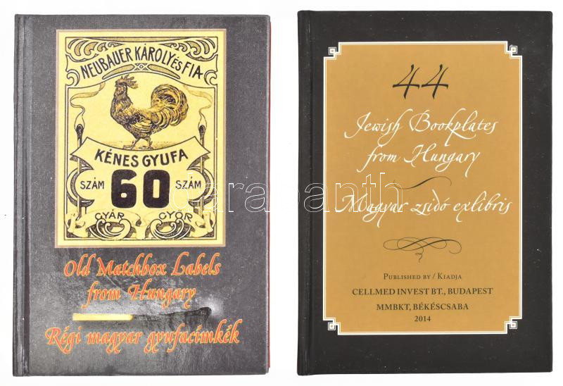 2 db minikönyv: Régi magyar gyufacímkék. / Old Matchbox Labels from Hungary. Összeáll.: Feőkajári Kajáry Károly. Számozott (115./200). + Magyar zsidó ex librisek. / Jewish Bookplates from Hungary. Számozott (197./300). Bp.-Békéscsaba, 2015-2016, Cellmed Invest Bt.-MMBKT/HMBBSI. Kiadói kartonált papírkötés.