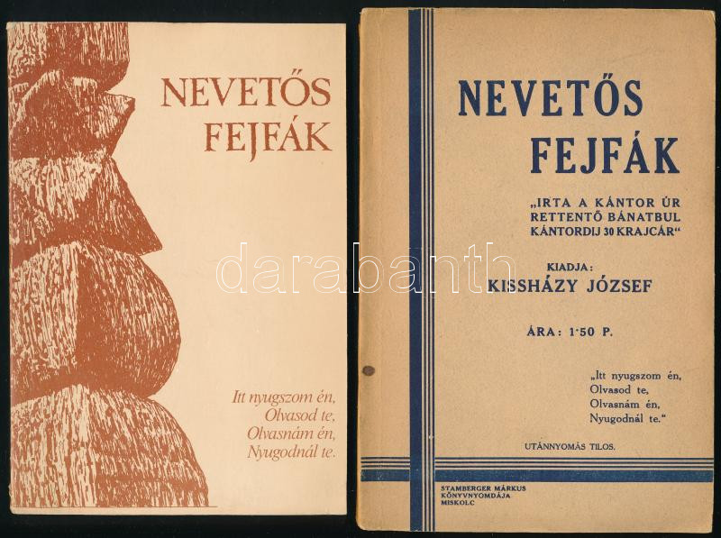 Kissházy József: Nevetős fejfák. Miskolc 1932. + Nyíregyháza, 1988, SZ... https://www.darabanth.com/de/442-Fernauktion/442.0/Bucher/Bucher-Reise-und-Ortgeschichte~1000007/Kisshazy-Jozsef-Nevetos-fejfak-Miskolc-1932-plus-Nyiregyhaza-1988-SZAMALK-Eredeti-es-re~II2875111