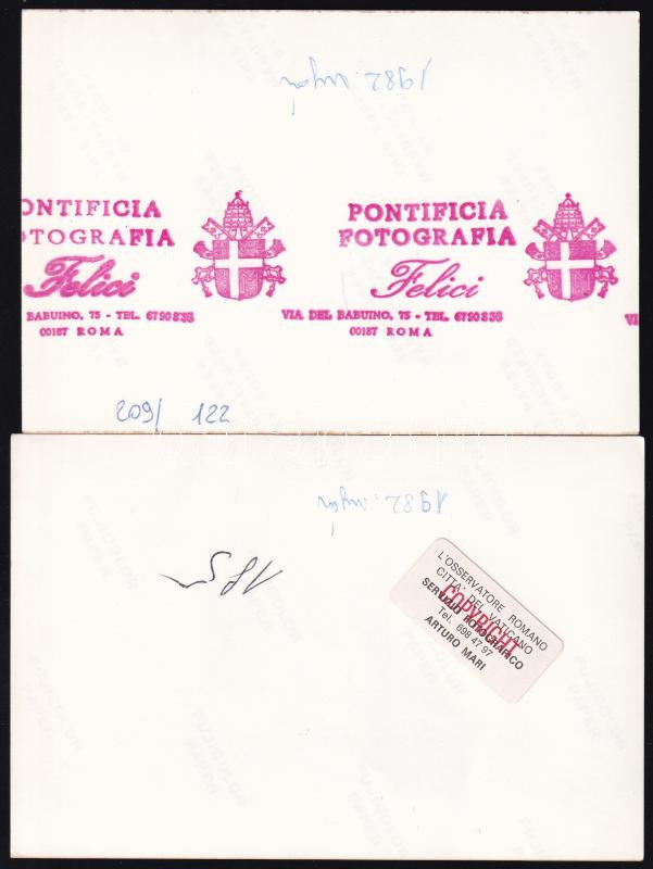 Beschreibung: 1982 II. János Pál pápa Vatikáni jelzett hivatalos fotók 2 db 14x9 cm