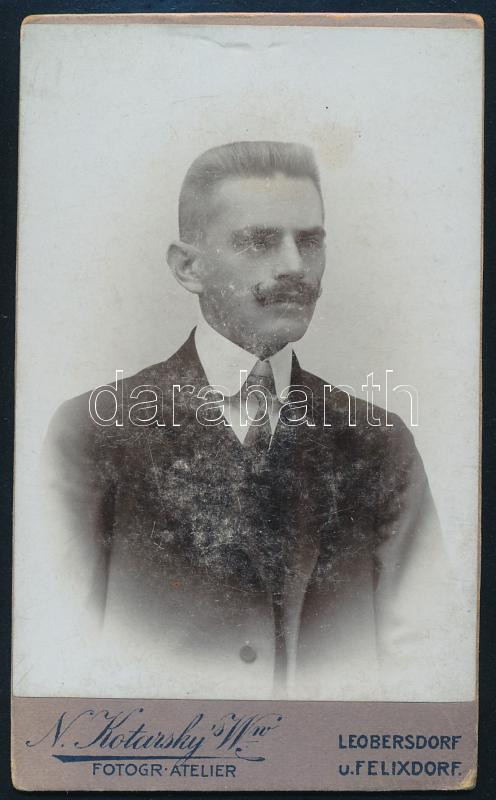 cca 1905 Férfiportré, keményhátú fotó Kotarsky (Leobersdorf/Felixdorf)... https://www.darabanth.com/de/442-Fernauktion/442.0/Fotografie/Foto~500024/cca-1905-Ferfiportre-kemenyhatu-foto-Kotarsky-LeobersdorfFelixdorf-mutermebol-kopasny~II2908115