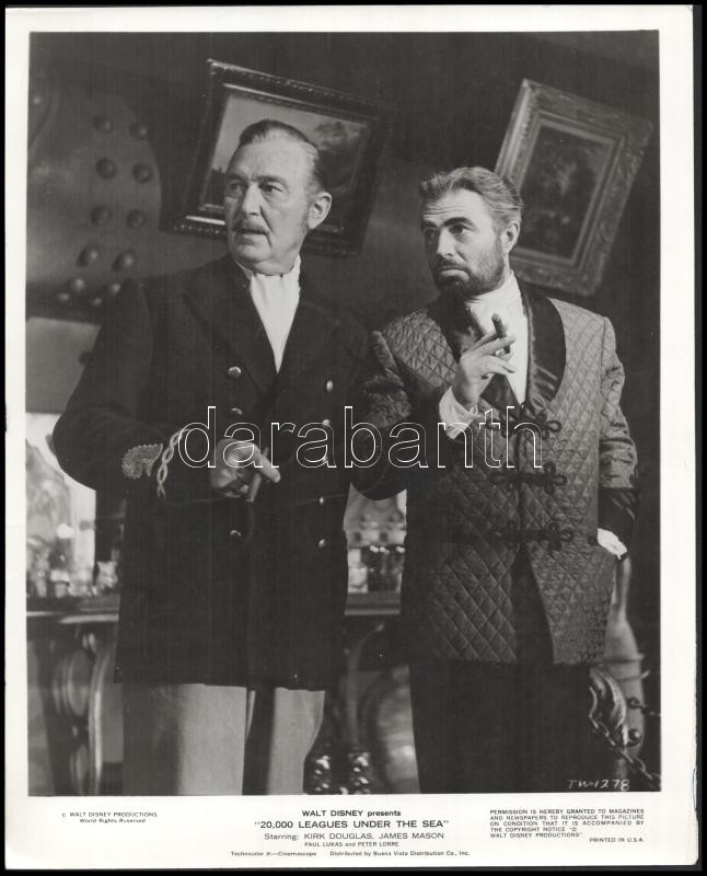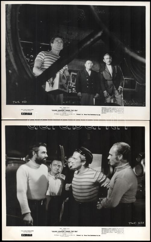 cca 1965 ,,20.000 Leagues under the Sea" című amerikai film jelenetei és szereplői, 3 db vintage produkciós filmfotó ezüst zselatinos fotópapíron, a használatból eredő (esetleges) kisebb hibákkal, 20,5x25,3 cm