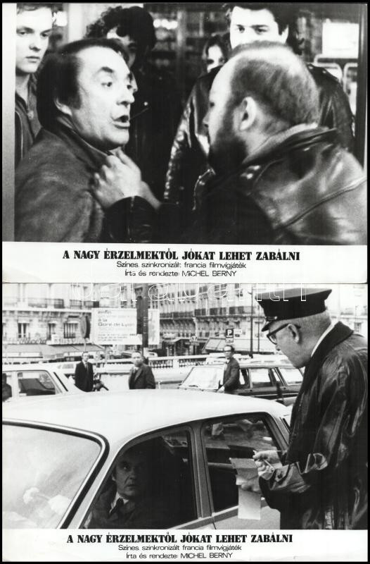 cca 1973 ,,A nagy érzelmektől jókat lehet zabálni" című francia filmvígjáték jelenetei és szereplői, 3 db vintage produkciós filmfotó ezüst zselatinos fotópapíron, a használatból eredő (esetleges) kisebb hibákkal, 18x24 cm