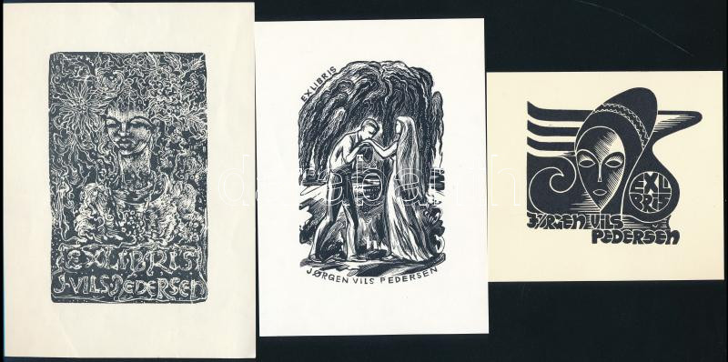 Beschreibung: Fery Antal (1908-1994): Ex libris, 3 db linómetszet, papír 10x16 cm ig
