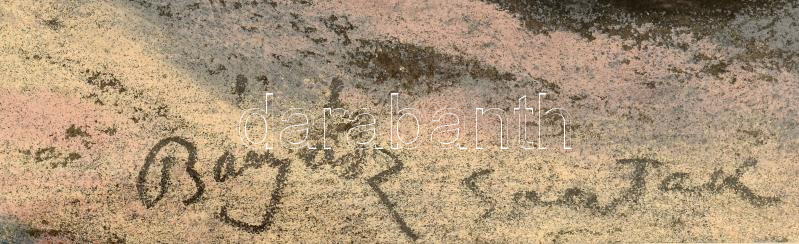 Bányász István, működött a XX. sz. első felében, 1924-ben Nagybányán tanult: Sárospataki híd. Pasztell, papír. Jelezve középen lent: Bányász, Spatak. Üvegezett fakeretben. 31,5x42 cm.