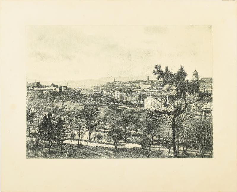 Beschreibung: Jelzés nélkül: A Horváth kert a Naphegyről. rézkarc, papír, 29x39 cm
