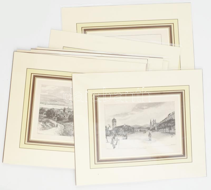 Morelli Gusztáv (1848-1909): 10 db történelmi, elsősorban felvidéki magyar városkép (Léva, Lőcse, Rozsnyó, Zólyom, Gyulafehérvár stb.) és táj, 1890-1900 körül. Rotációs fametszet, papír, jelzett a metszeten. Modern paszpartuban. 12x18 cm k. méretekben.