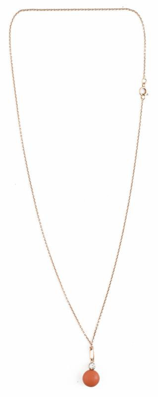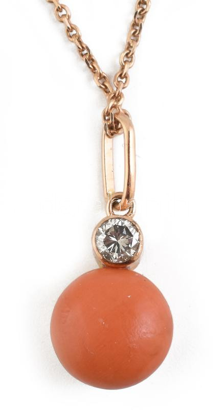 Arany (Au/14k) nyaklánc, korallal és brillel (0,2ct) ékített medállal,... https://www.darabanth.com/de/442-Fernauktion/442.0/Juwellen-und-Kunstobjekte-aus-Edelmetall/Juwellen-und-Kunstobjekte-aus-Edelmetall~1000029/Arany-Au14k-nyaklanc-korallal-es-brillel-0-2ct-ekitett-medallal-jelzett-h-51-5-cm-bru~II2844560