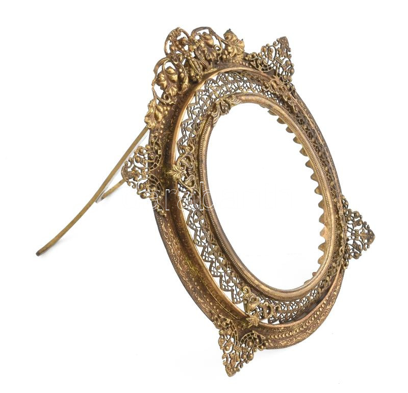 Antik fényképtartó, fém, tűzaranyozott, támasztható, minimális sérülés... https://www.darabanth.com/de/442-Fernauktion/442.0/Kunst-Dokumente-andere-Sammelgebiete/Antik~500008/Antik-fenykeptarto-fem-tuzaranyozott-tamaszthato-minimalis-serulessel-m-12-5-cm~II2908702