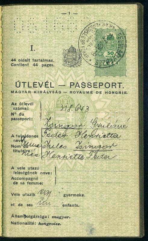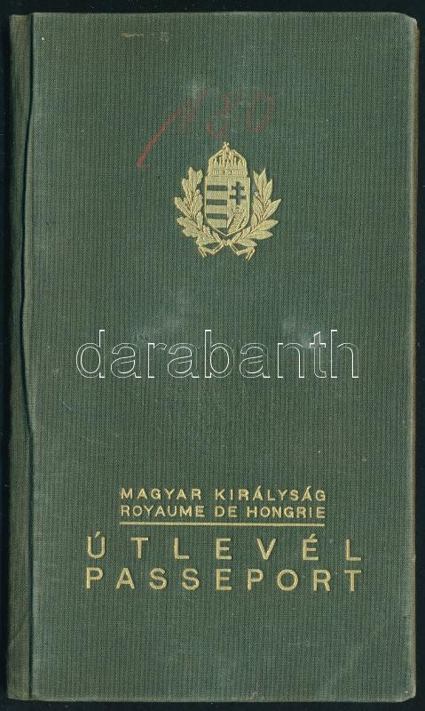 1937 Magyar Királyság által kiállított fényképes útlevél / Hungarian p... https://www.darabanth.com/de/442-Fernauktion/442.0/Kunst-Dokumente-andere-Sammelgebiete/Dokument~500021/1937-Magyar-Kiralysag-altal-kiallitott-fenykepes-utlevel-Hungarian-passport~II2911479