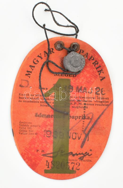 1939 Magyar Paprika Szeged tanúsítvány, ólomzáras, 4 nyelven, 10x7 cm https://www.darabanth.com/de/442-Fernauktion/442.0/Kunst-Dokumente-andere-Sammelgebiete/Dokument~500021/1939-Magyar-Paprika-Szeged-tanusitvany-olomzaras-4-nyelven-10x7-cm~II2913654