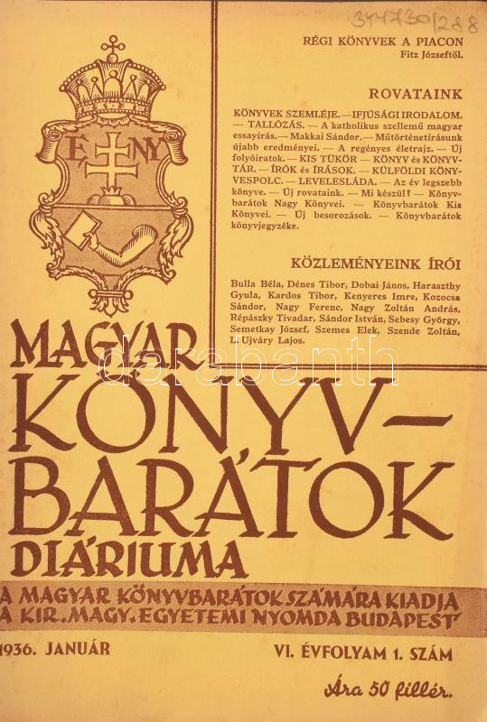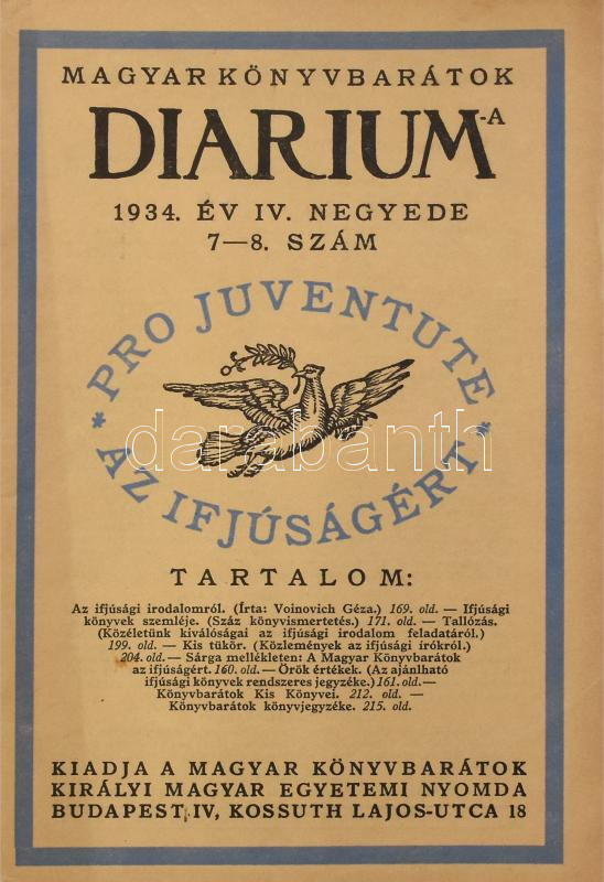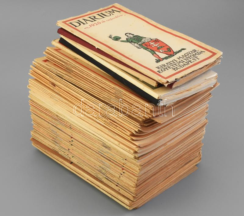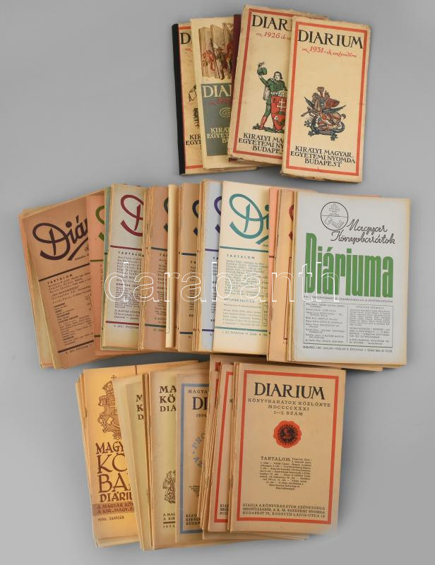 1926-1948 Diárium. A Könyvbarátok Szövetségének/Magyar Könyvbarátok folyóirata, 1926-1948-ig, összesen 115 szám, majd nem teljes sorozat. Összesen 4 szám hiánnyal: 1936/2., 5-6.; 1946/jan.-ápr., máj.-szept.) Papírkötésekben, két javított gerinccel, változó, de nagyrészt jó állapotban.
