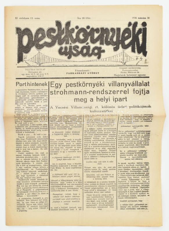 1936 Pestkörnyéki Újság XI. évf. 13. sz., 1936. márc. 30., a címlapon ... https://www.darabanth.com/de/442-Fernauktion/442.0/Kunst-Dokumente-andere-Sammelgebiete/Drucksachen~1000005/1936-Pestkornyeki-Ujsag-XI-evf-13-sz-1936-marc-30-a-cimlapon-a-Vecsesi-Villamossag~II2910887