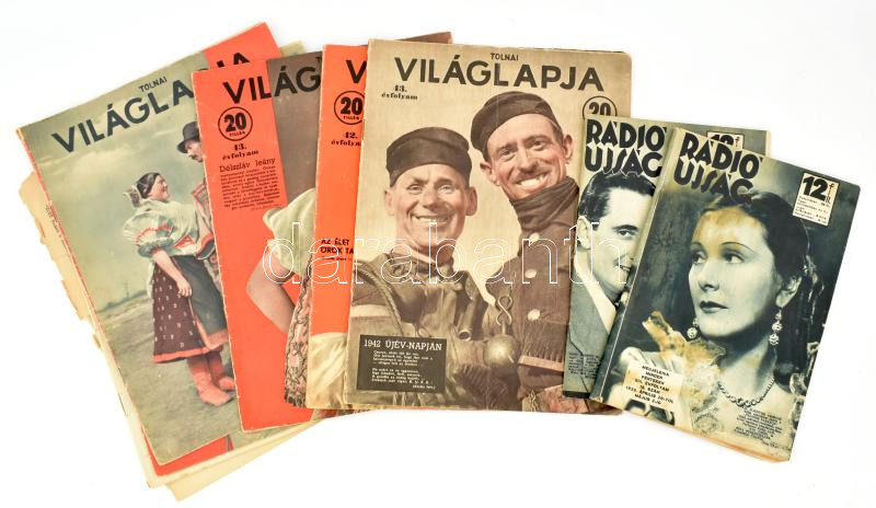 1936 Rádióújság 2 száma + 1937-1941 Tolnai világlapja 6 száma, szakado... https://www.darabanth.com/de/442-Fernauktion/442.0/Kunst-Dokumente-andere-Sammelgebiete/Drucksachen~1000005/1936-Radioujsag-2-szama-plus-1937-1941-Tolnai-vilaglapja-6-szama-szakadozott-boritokkal~II2907635