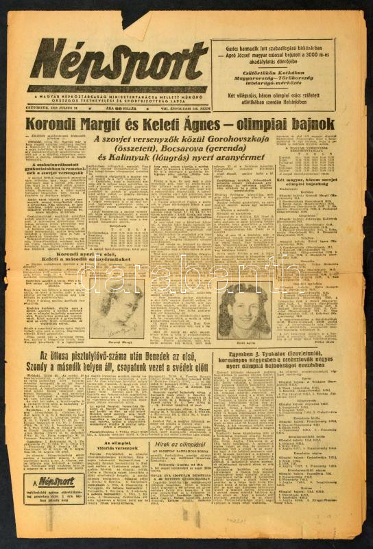 1952 Népsport VIII. évf. 148. sz., 1952. júl. 24., a Helsinki olimpia ... https://www.darabanth.com/de/442-Fernauktion/442.0/Kunst-Dokumente-andere-Sammelgebiete/Drucksachen~1000005/1952-Nepsport-VIII-evf-148-sz-1952-jul-24-a-Helsinki-olimpia-hireivel-Korondi-Margit-C3~II2878648