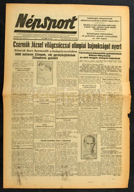 1952 Népsport VIII. évf. 149. sz., 1952. júl. 25., a Helsinki olimpia ... https://www.darabanth.com/de/442-Fernauktion/442.0/Kunst-Dokumente-andere-Sammelgebiete/Drucksachen~1000005/1952-Nepsport-VIII-evf-149-sz-1952-jul-25-a-Helsinki-olimpia-hireivel-Csermak-Jozsef~II2878643