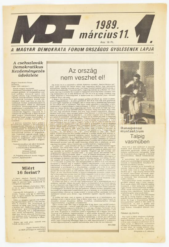 1989 Az MDF - a Magyar Demokrata Fórum Országos Gyűlésének Lapja márci... https://www.darabanth.com/de/442-Fernauktion/442.0/Kunst-Dokumente-andere-Sammelgebiete/Drucksachen~1000005/1989-Az-MDF-a-Magyar-Demokrata-Forum-Orszagos-Gyulesenek-Lapja-marcius-11-i-szam~II2911091