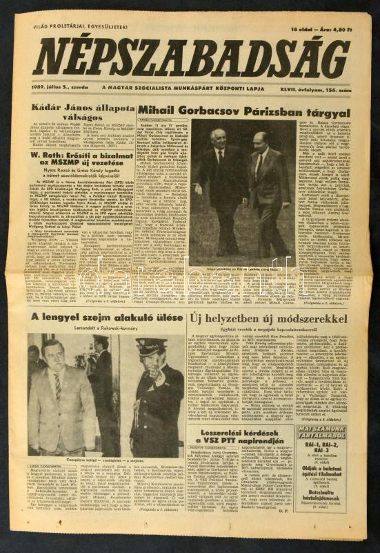 1989 Népszabadság XLVII. évf. 156. sz., 1989. júl. 5., a címlapon: &qu... https://www.darabanth.com/de/442-Fernauktion/442.0/Kunst-Dokumente-andere-Sammelgebiete/Drucksachen~1000005/1989-Nepszabadsag-XLVII-evf-156-sz-1989-jul-5-a-cimlapon-Mihail-Gorbacsov-Parizsban~II2878589