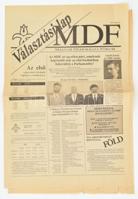 1990. április, MDF választási lap https://www.darabanth.com/de/442-Fernauktion/442.0/Kunst-Dokumente-andere-Sammelgebiete/Drucksachen~1000005/1990-aprilis-MDF-valasztasi-lap~II2911133