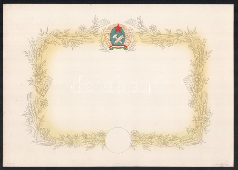 Beschreibung: Cca. 1950. 5 db kitöltetlen Rákosi korabeli oklevél.