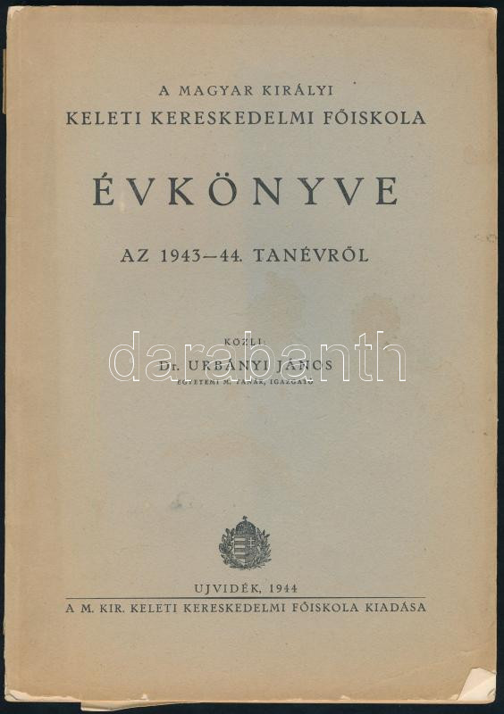 Újvidék M. Kir. Keleti Keresk. Főiskola évkönyve 1943-1944 74p. szakad... https://www.darabanth.com/de/442-Fernauktion/442.0/Kunst-Dokumente-andere-Sammelgebiete/Drucksachen~1000005/Ujvidek-M-Kir-Keleti-Keresk-Foiskola-evkonyve-1943-1944-74p-szakadt-papirboritoval~II2886522