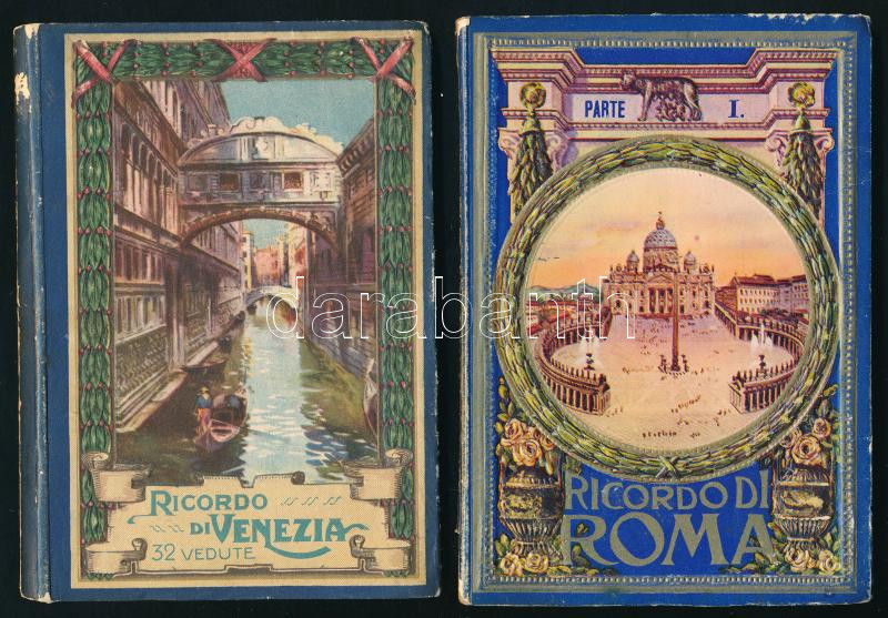 Beschreibung: cca 1900 Ricordo di Roma, Ricordo di Venezia 2 db turisztikai leporelló