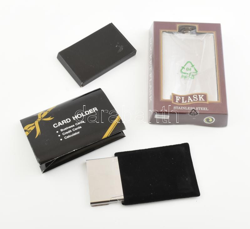 Beschreibung: 2 darab névjegytartó + flaska, eredeti csomagolásban, szép állapoban