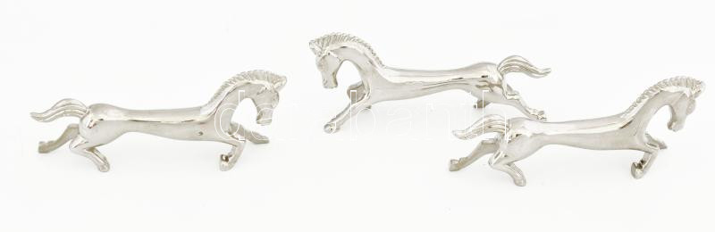 Beschreibung: 3 darab ló alakú fém késbak, jelzés nélkül, h: 8,5 cm