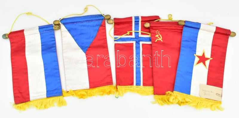 5 db selyem asztali zászló (szovjet, cseh, jugoszláv, stb.), 25x14 cm ... https://www.darabanth.com/de/442-Fernauktion/442.0/Kunst-Dokumente-andere-Sammelgebiete/Flohmarkt~500015/5-db-selyem-asztali-zaszlo-szovjet-cseh-jugoszlav-stb-25x14-cm-korul~II2907392