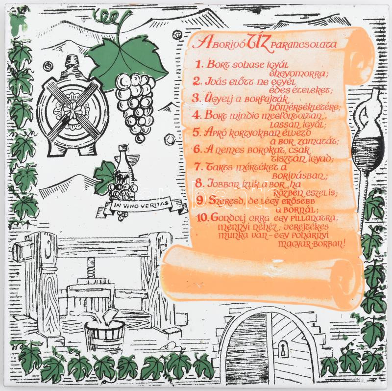 Borivók tízparancsolata. Festett csempe 10x10 cm https://www.darabanth.com/de/442-Fernauktion/442.0/Kunst-Dokumente-andere-Sammelgebiete/Flohmarkt~500015/Borivok-tizparancsolata-Festett-csempe-10x10-cm~II2906167